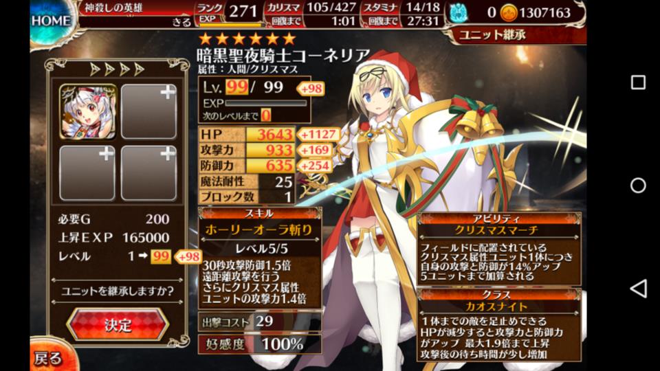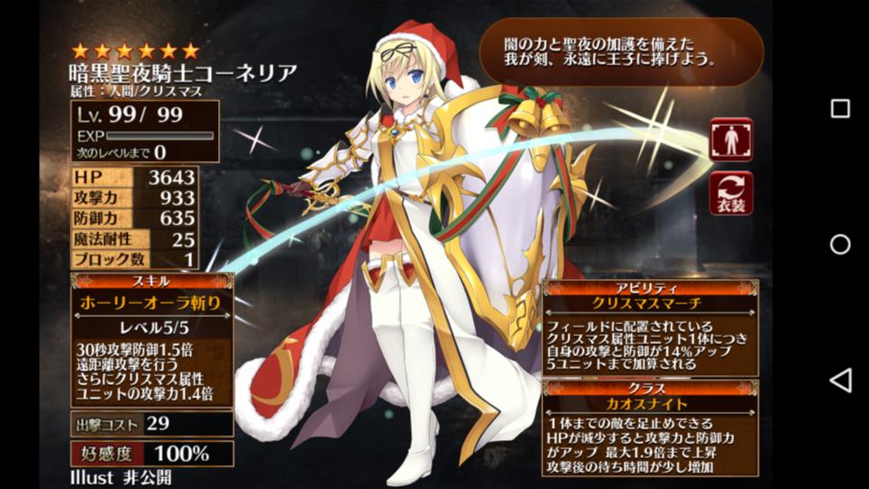 クリスマスこーねりあ、クリスマスかのん育成完(←やってみたかっただけの奴 Category:アイギス Date:2018年12月22日 そんな訳で、先日引いた、クリスマスコーネリアとクスマスカノンと昔から持っていたクリスマスリュリュの育成完了です自慢じゃないのですが管理人は黒さえあればどうにかなるんじゃね?白の育成は気が向いた時で十分だとりあえす、編成に黒ぶっ込んどけと言うスタイルなので白の育成ソースは十分に余っていましたそして出来上がったのがこちらいやぁ~たまには白も育成しないとね一応、黒は黒である程度育成出来るように下準備ぐらいはやっているのですが・・・1体目のクリこねこねには、5周年で配られたハッピーをぶちこんでlv99に攻撃?的な感じをイメージしてカオスナイトを選んでみましたそして・・・第二覚醒で貰えるもう1体のクリこねこねも育成2分岐あるうちのどっちにも対応出来る形ですスキルも一応防御っぽい感じの奴を選んでみましたあとはおまけのリュリュクリスマス属性をとりあえず5人用意してみました・・・やりたかっただけと言うのは重々承知していますざっくりと作ってみたクリスマス編成他にもさー、クリスマス属性のキャラ居ますけど見た目が好きだったキャラはこの3名なのですよ、管理人的にまぁ、折角のクリスマスなのでね後先考えず、やりたい事やってみましたどうせ当面新黒は狙わないようにする予定なので育成する準備が整ったらまた新キャラ狙います PR