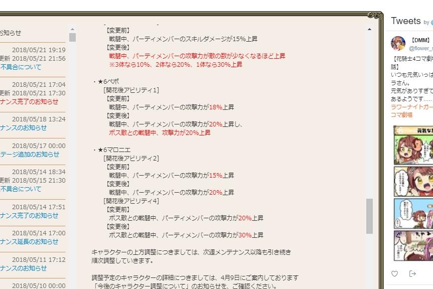 ペポとマロニエの調整に関して Category:フラワーナイトガール Date:2018年05月22日 本日のメンテでペポとマロニエ(管理人が持ってるキャラを抜粋)の調整が入りましたねマロニエに関してはキャラのグラフィックも追加されており大変可愛らしく仕上がっています敵の攻撃力を下げるのがメインな所もあるのですがそこに加える形で味方の攻撃力を上げる部分が強化され管理人はデバフ兼防御バフパとして普通に使っているので強くなる事には歓迎ですただ、問題はペポの方ですかねボスとの戦闘中に攻撃力20%アップが追加され火力が上がったのですがなんかちょっと物足りないもともと、このゲームは回避持ちってのもがなんか慎重になりやすい傾向が強くもう一声なんかあっても良いんじゃないかなーってのが素直な感想ですこのペポを入れるか入れないかでもう1度回避パを考えてみますかねぇ~可愛いから入れたいってのが本音 PR