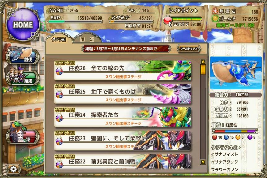 クジラ艇ミッションコンプリート Category:フラワーナイトガール Date:2018年05月11日 フラワーナイトガールのエンドコンテつの1つであると言われているクジラ艇なんですが、手持ちが充実してきただけあって見事に現在実装されているステージ分攻略出来ました出来て良いのかよって思わない事もないのですがやっぱ、派手に使ったあの2人を入れた部隊の強化が見事に的中したと言うしかありませんねちなみに、一応ネタとして最後は打タイプで攻略しています使った編成はこんな感じ これに強そうなフレンドの助けを借りて叩けばなんか勝てたので結果オーライ強そうな装備も色々交換出来たのでまた部隊の強化が出来そうです・・・どこを攻略するんだよと言う話は置いといてですねまだ、国家のクエストを全然進めてないのでその辺をやっていきますかね?ただ、今回はイベントとかがあんまり進んでないので暫くは残ってる雑仕事を片付ける感じです管理人、わりとあっさりクジラ終わったのでちょっと驚いています PR