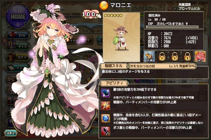 ペポとマロニエの調整に関して Category:フラワーナイトガール Date:2018年05月22日 本日のメンテでペポとマロニエ(管理人が持ってるキャラを抜粋)の調整が入りましたねマロニエに関してはキャラのグラフィックも追加されており大変可愛らしく仕上がっています敵の攻撃力を下げるのがメインな所もあるのですがそこに加える形で味方の攻撃力を上げる部分が強化され管理人はデバフ兼防御バフパとして普通に使っているので強くなる事には歓迎ですただ、問題はペポの方ですかねボスとの戦闘中に攻撃力20%アップが追加され火力が上がったのですがなんかちょっと物足りないもともと、このゲームは回避持ちってのもがなんか慎重になりやすい傾向が強くもう一声なんかあっても良いんじゃないかなーってのが素直な感想ですこのペポを入れるか入れないかでもう1度回避パを考えてみますかねぇ~可愛いから入れたいってのが本音 PR