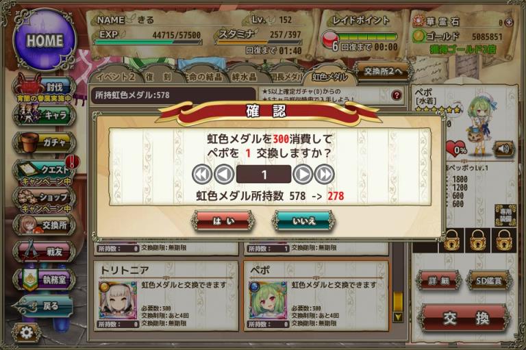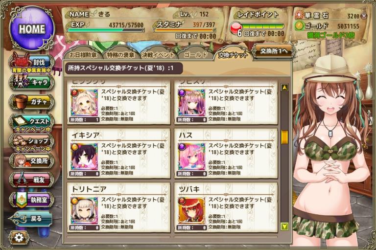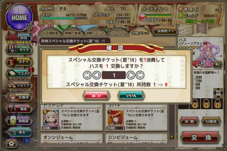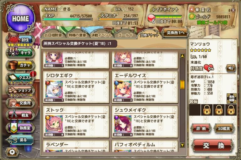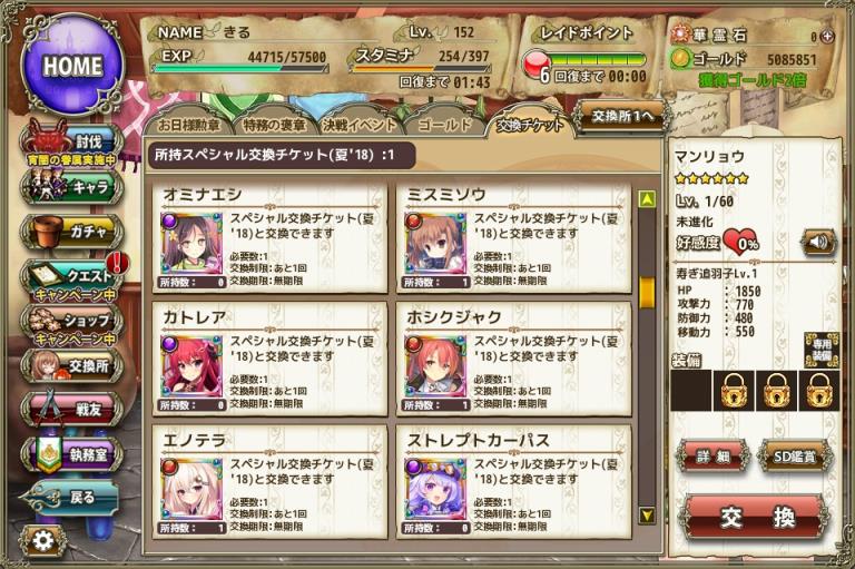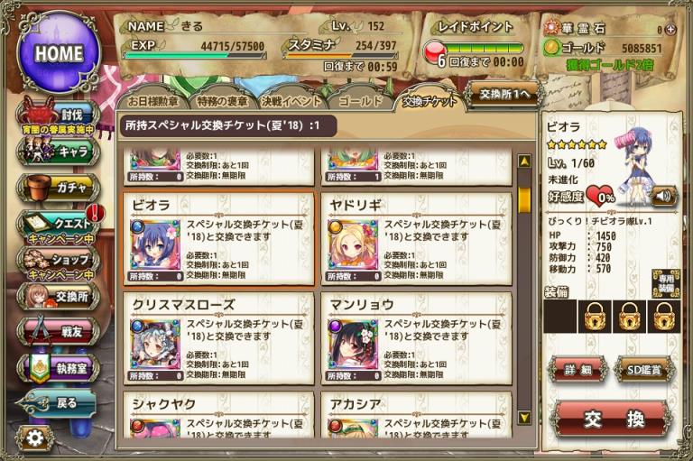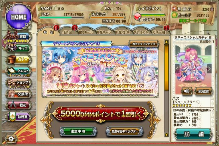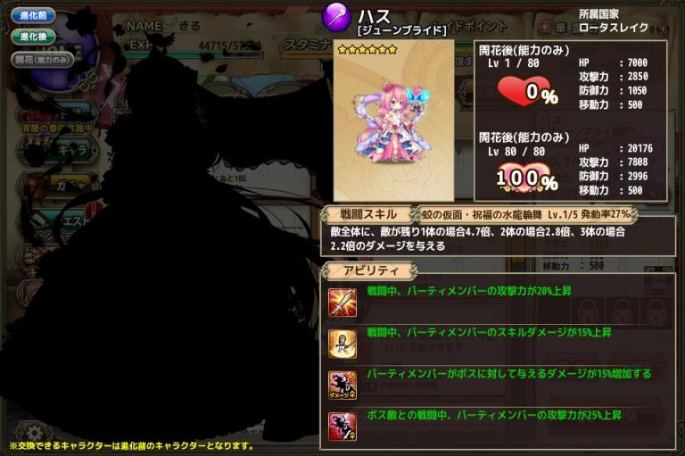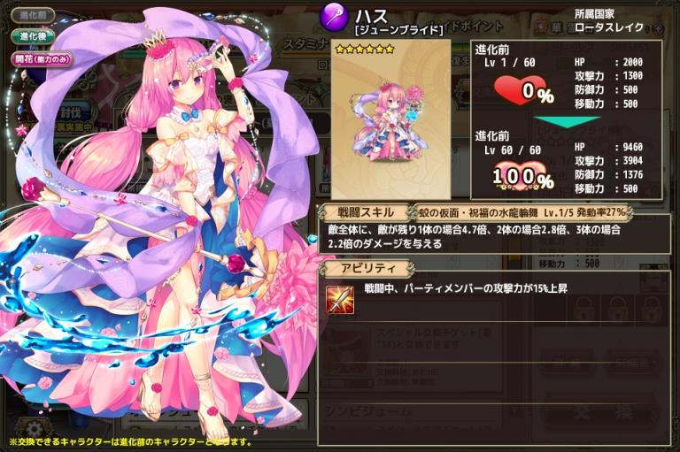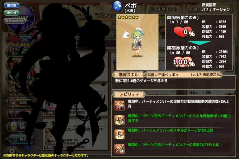 水着ですよ、みぃずぅぎぃ!~新しい虹を手に入れるとやる気出る男~ Category:フラワーナイトガール Date:2018年07月10日 基本的に課金行為自体は全然抵抗がない管理人なのですが流石にこのゲームを通常の状態で虹が出るまで引く程お金に余裕がないのが現実であるしかし!ちょいちょいっと開催される虹を入手出来るチャンスのガチャには積極的にチャンジしていきます5000円ぐらいなら全然おkさっそくぽちっと・・・金!からのー特に何も新しさはない・・・しかし、これがおまけですよガチャのおまけがメインでガチャがおまけこの交換チケットが目玉なのですよこれで本日実装された新キャラより1個前の虹なら誰でも選べる・・・はずさてさて誰を選ぼうか~と、ちょっとその前に、石が5000個(11連1回分)集まっているので新キャラ来いー!来いー!と祈りながら引いてみると金からのー!NEWの文字が来たと言う事はだ!!水着ホシクジャクちゃんですよ俺、今回これは狙ってた虹は狙うものではないけれど、金は狙える出なかったらちょっと課金をも考えて居たけれど出てくれた、無料分の11連で出てくれたこれは嬉しいですよ金でもですよ、出ない時は出ないですからねぇ入手出来る機会に入手出来てほんと嬉しいそして、本題に戻りましょう虹の交換を誰にするか管理人の予定としてはハス(ジューンブライド)か、1ターン目のスキル発動率1.65倍持ちの誰かこの辺が欲しかったのです一応、虹メダルがもうちょっとで600枚になるぐらいはあったのでどっちも狙って交換しても良かったのですがそうすると、いつか来るであろうトリカブトちゃんのお着替えで涙を飲む形となってしまうのでどうしても、虹メダル300枚ぐらいは残しておきたいそこに今回の虹の交換チケットが来てくれたので渡りに船と言った感じですかねあまりべらべら喋ってても仕方ないので話を勧めましょう先程の前提を踏まえてですよ戦力的にちょっと合わないかも知れないけれどビオラちゃん(普通の方)が超個人的な趣味として決して、変な意味ではない←重要ビオラちゃん欲しいなぁーと思ったのですが今回じゃなくても良いかと保留カトレア(光華の姫君)もシュウメイギクも欲しかったこの2人はマジで欲しかったけど、俺の心が何か、欲しなかった欲しいのか欲しくないのかどっちなのか俺もわからないただ、気分がこの2人ではなかった性能じゃない、気分だそこで、無難なラインでまずは、ハス(ジューンブライド)を交換チケットで交換したのがミソ虹メダルはまだ残っているハス自体は可愛さももちろんありますが正月エーデルワイス系統と同じで部隊の火力をアップさせてくれますここに期待して管理人は交換しました性能面での期待をしての採用たぶん、1軍に入れて誰かと入れ替える形になる・・・のかな?その辺は様子見でそして、虹色メダル300枚分はどうしたかと言うととにかく1ターン目スキル1.65倍持ちを増やしたかったのでそのアビを持っている事が前提後は、管理人の好みでそして・・・これは、誰だ?誰だ?誰だ?そう、本日実装されたばかりの水着ペポちゃんこれを虹メダル300枚で交換しますか?後悔しませんか?例え後悔しようが自分の生き方は曲げない!本日実装されたばかりの虹新キャラを入手しましたとさこれがこのゲームの良いところですよねぇもともと虹メダルは持っていたので全然無茶をする事なく新実装の最高レアリティキャラを入手出来たっと嬉しいじゃないただね、若干アビリティ枠で気になるものがあると言えばある他のキャラの方がどうだと言う気持ちがないといえば嘘になるただ、それは性能だけを見た場合の話可愛さ、心が動いた瞬間、この娘欲しい~ィ!と思ったのだからしょうがないゲームぐらいは自由にやろう思いった事をやろう明日から育成がんばります PR
